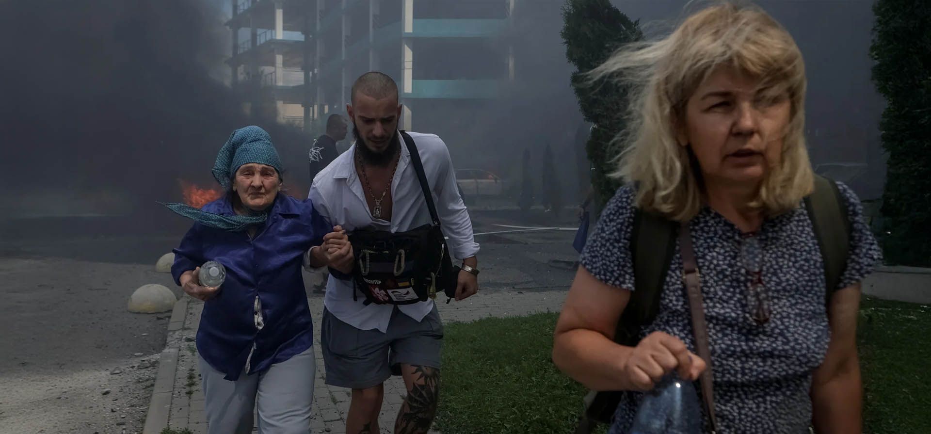 Los bomberos combaten el incendio tras un ataque ruso que afectó una zona residencial en Járkov, Ucrania, el jueves 24 de julio de 2025. (Foto AP/Andrii Marienko)