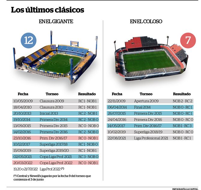 La Liga Profesional aún no arrancó, pero el clásico rosarino ya comenzó a jugarse. Y más allá de que tanto el DT de Central, Leandro Somoza, como el de Newell's, Javier Sanguinetti, ya anotaron ese partido de la fecha nueve del fixture con letras mayúsculas, la realidad es que hay otros actores muy importantes que se pronunciaron sobre el próximo derby rosarino. Desde Arroyito marcaron el territorio y avisaron que en las tribunas sólo habrá hinchas auriazules, mientras que desde el Parque indicaron que solicitarán que haya un espacio destinado a los simpatizantes rojinegros. Esta ya es la primera novela del derby. Pero además entrarán en juego las autoridades de seguridad de la provincia de Santa Fe para definir el día y el horario preciso en que podrá disputarse el clásico. Es que el miércoles 20 de julio, fecha original, justo es el Día del Amigo, que en Rosario se celebra de manera multitudinaria y tal vez no sería conveniente jugar tamaño partido en esta jornada. Entonces sería un día antes o uno después. Pero incluso se refirió al clásico rosarino el presidente de la AFA, Claudio Tapia, desde España donde está con la selección argentina, y aseguró que en el 2023 al menos alguno de los clásicos se jugará en el Coloso, ante el desbalance notorio de los últimos años en cuanto a localía a favor de Central (ver infografía). Así el duelo que paraliza a la ciudad ya se palpita, no sólo en Bella Vista y Arroyo Seco, sino también a nivel dirigencial y organizativo.