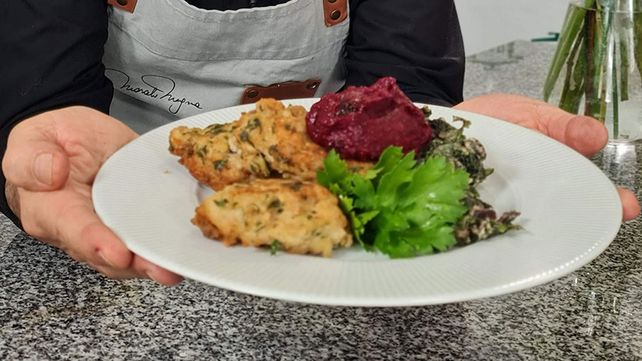 En un bold mezclar bien todos los ingredientes, salar y pimentar. Una vez que el pescado esté bien mezclado con el pan, el perejil, la cebolla rallada colocar un chorro de limón y por último los huevos y el pocillo de aceite. Calentar bien el aceite a una temperatura de 165 a 170 grados por que si el aceite está bien caliente la fritura no hace mal, es solo cuestión de comprobar la temperatura para obtener una muy buena fritura, colocar cucharadas de la preparación, cocinarlas por todos sus lados y reservar en papel de cocina para que absorba todo el exceso de la materia grasa. Mientras tanto procesar las remolachas ya cocinadas y mezclar con la mayonesa y un toque de pimienta ya que el picante le queda muy bien.